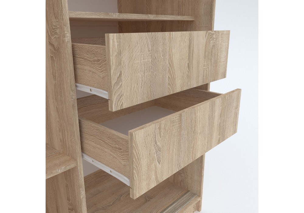 Описание изделия:Изделие представляет собой комбинированный шкаф-купе. Стандартная глубина шкафа в 60 см позволяет разместить одежду на плечиках без помех для открытия раздвижных дверей, а полки создают вместительные ниши для крупных вещей, таких как постельное бельё, пледы, одеяла и подушки. Система раздвижных дверей "Универсал" обеспечивает плавный ход дверей, а алюминиевый каркас гарантирует надёжность и долговечность. Шкаф разделен вертикальной перегородкой на два отделения: платяное и бельевое отделение. Платяное отделение комплектуется одной верхней и нижней полками и металлической штангой, бельевое - тремя полками и двумя выдвижными ящиками. Одна из раздвижных створок шкафа комплектуется декором из зеркала. Зеркало с обратной стороны оклеено специальной противоосколочной защитной плёнкой, что делает его более устойчивыми к разбитию и безопасными в случае повреждения. Декор приклеивается к створке на фабрике.
