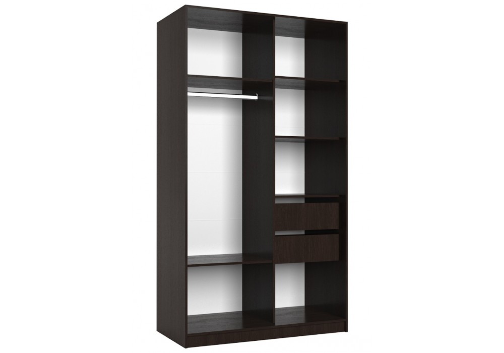 Описание изделия:Изделие представляет собой комбинированный шкаф-купе. Стандартная глубина шкафа в 60 см позволяет разместить одежду на плечиках без помех для открытия раздвижных дверей, а полки создают вместительные ниши для крупных вещей, таких как постельное бельё, пледы, одеяла и подушки. Система раздвижных дверей "Универсал" обеспечивает плавный ход дверей, а алюминиевый каркас гарантирует надёжность и долговечность. Шкаф разделен вертикальной перегородкой на два отделения: платяное и бельевое отделение. Платяное отделение комплектуется одной верхней и нижней полками и металлической штангой, бельевое - тремя полками и двумя выдвижными ящиками. Раздвижные створки шкафа комплектуются декором из зеркал. Зеркала с обратной стороны оклеены специальной противоосколочной защитной плёнкой, что делает их более устойчивыми к разбитию и безопасными в случае повреждения. Декор приклеивается к створке на фабрике.