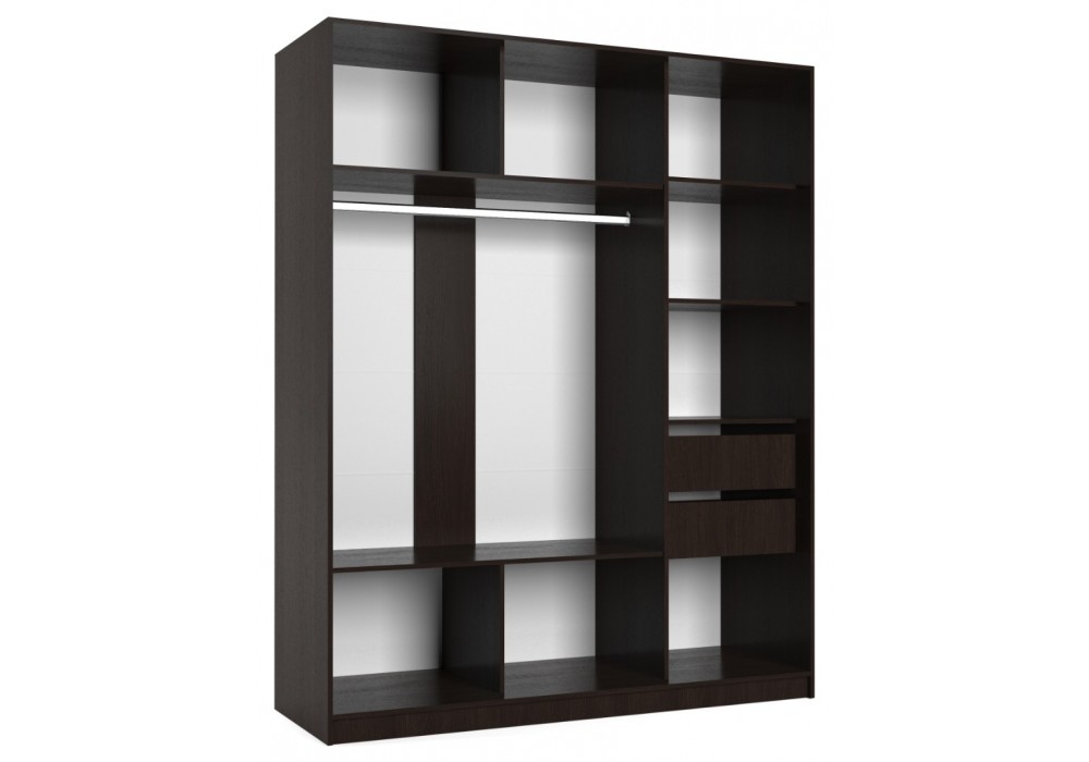 Описание изделия:Изделие представляет собой комбинированный шкаф-купе. Стандартная глубина шкафа в 60 см позволяет разместить одежду на плечиках без помех для открытия раздвижных дверей, а полки создают вместительные ниши для крупных вещей, таких как постельное бельё, пледы, одеяла и подушки. Система раздвижных дверей "Универсал" обеспечивает плавный ход дверей, а алюминиевый каркас гарантирует надёжность и долговечность. Шкаф разделен вертикальной перегородкой на два отделения: платяное и бельевое отделение. Платяное отделение комплектуется полками и металлической штангой, бельевое - тремя полками и двумя выдвижными ящиками. Раздвижные створки шкафа комплектуются декором из зеркал. Зеркала с обратной стороны оклеены специальной противоосколочной защитной плёнкой, что делает их более устойчивыми к разбитию и безопасными в случае повреждения. Декор приклеивается к створке на фабрике.