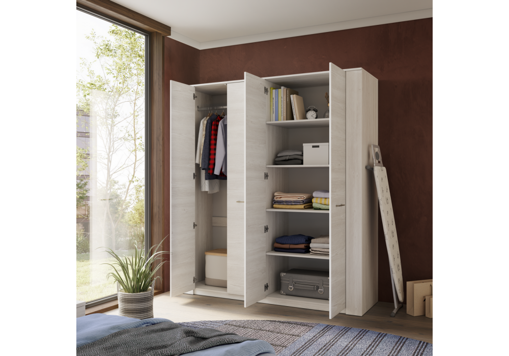 Данная модель шкафа представлена в нескольких вариантах древесного цвета: «Дуб Бонифаций», «Таксус», «Дуб Бонифаций/белый», «Таксус/графит», поэтому подходящую модель для своего дома сможет выбрать каждый человек. Большой и вместительный шкаф для одежды из коллекции «Вирджиния» – идеальный вариант для большой спальни или другой комнаты, а также отлично подойдет для комнаты небольших параметров.
