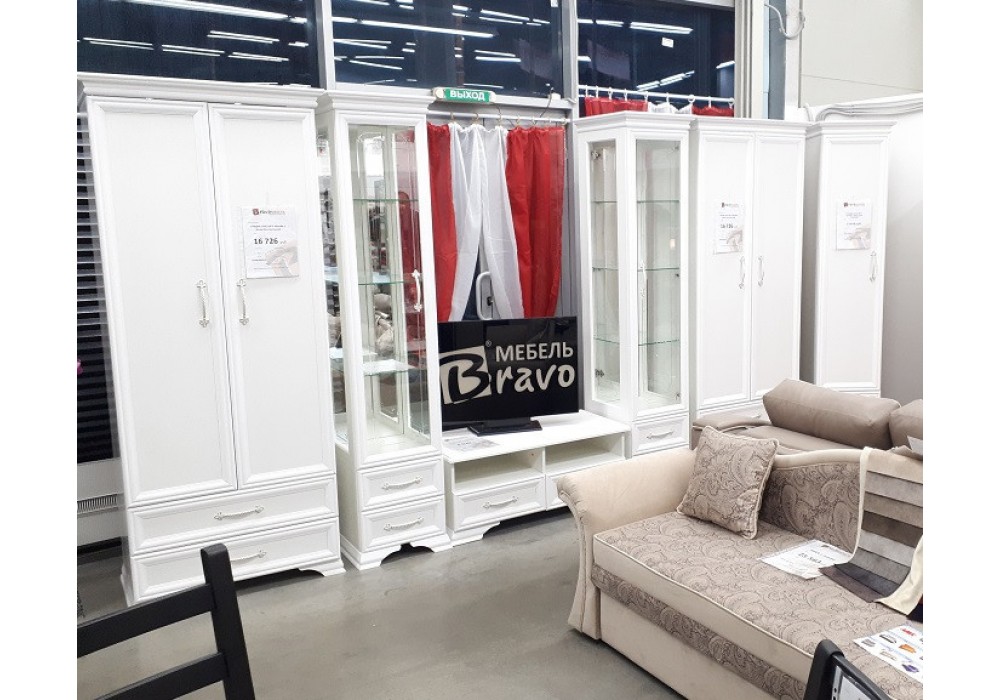 Шкаф с витриной 1 дверь 1 стекло Грация (Белый/Белый) фабрика Браво мебель
