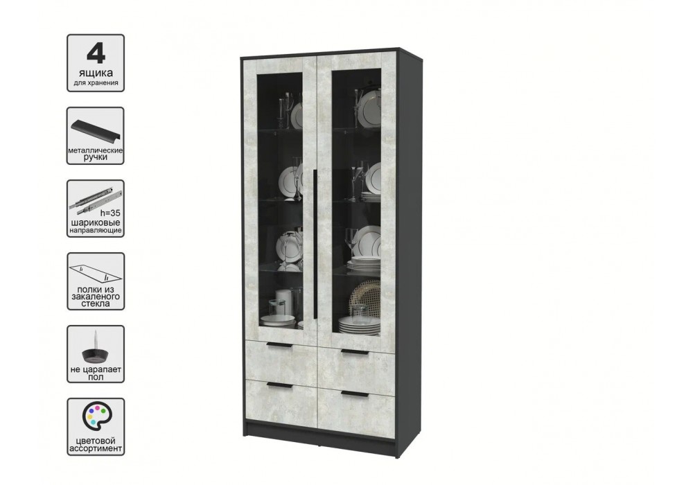 Шкаф с витриной Концепт КТ-ШВ2 (Антрацит/Бетон лайт) фабрика Интерлиния
