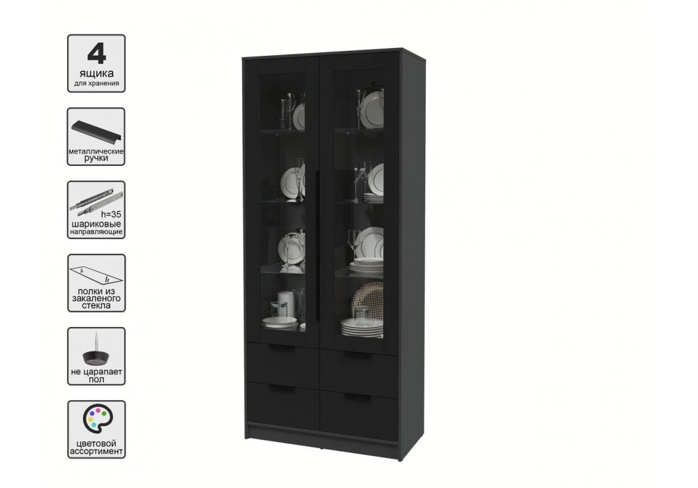 Шкаф с витриной Концепт КТ-ШВ2 (Антрацит/Черный) фабрика Интерлиния