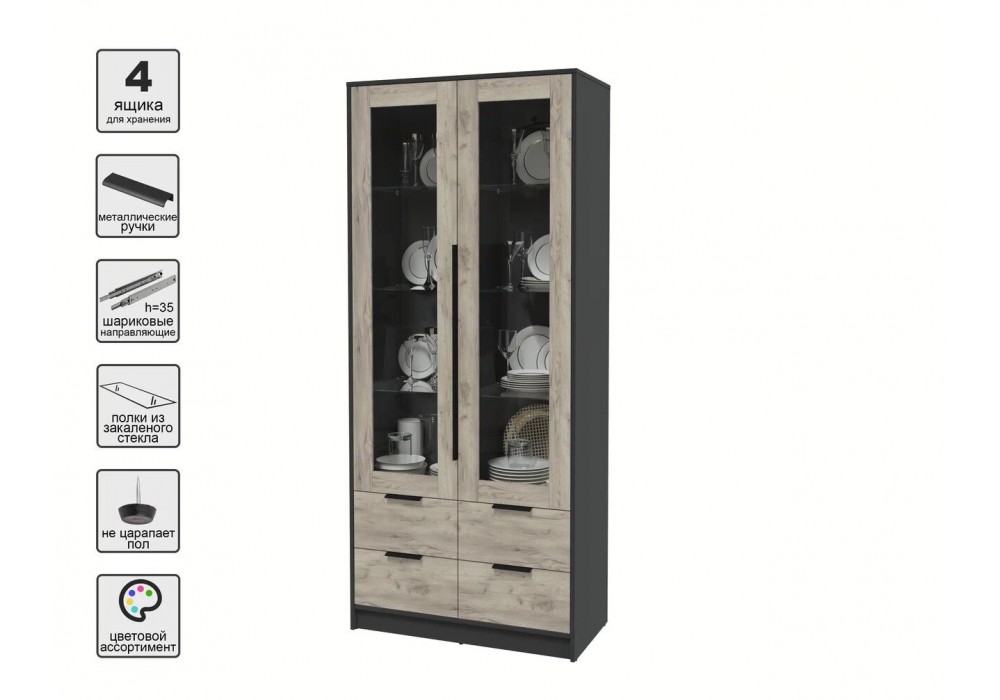 Шкаф с витриной Концепт КТ-ШВ2 (Антрацит/Дуб серый) фабрика Интерлиния
