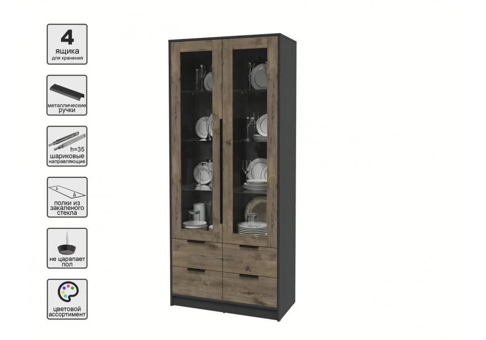 Шкаф с витриной Концепт КТ-ШВ2 (Антрацит/Дуб веллингтон) фабрика Интерлиния