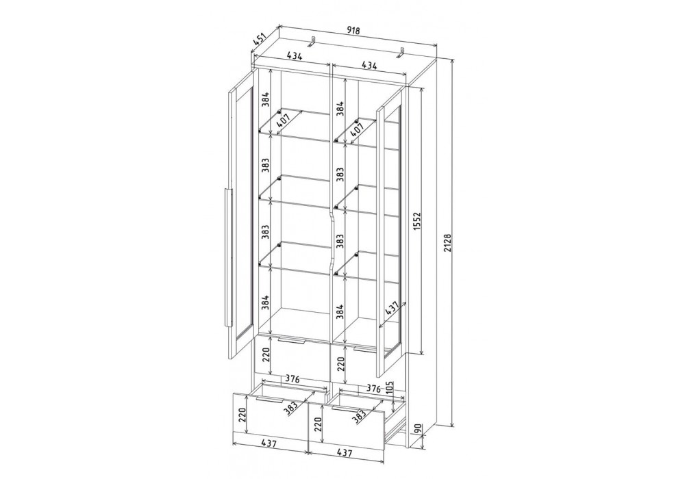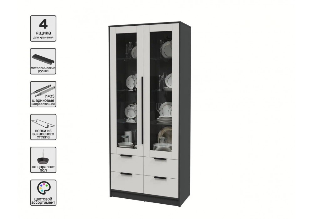 Шкаф с витриной Концепт КТ-ШВ2 (Антрацит/Персидский жемчуг) фабрика Интерлиния