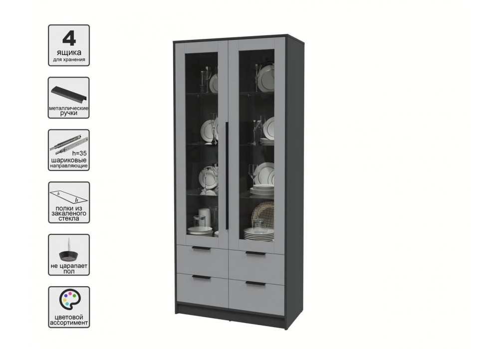 Шкаф с витриной Концепт КТ-ШВ2 (Антрацит/Серебро) фабрика Интерлиния