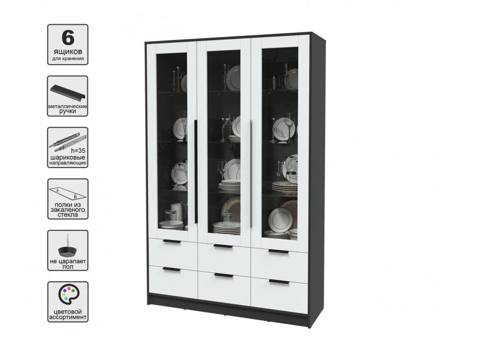 Шкаф с витриной Концепт КТ-ШВ3 (Антрацит/Белый) фабрика Интерлиния