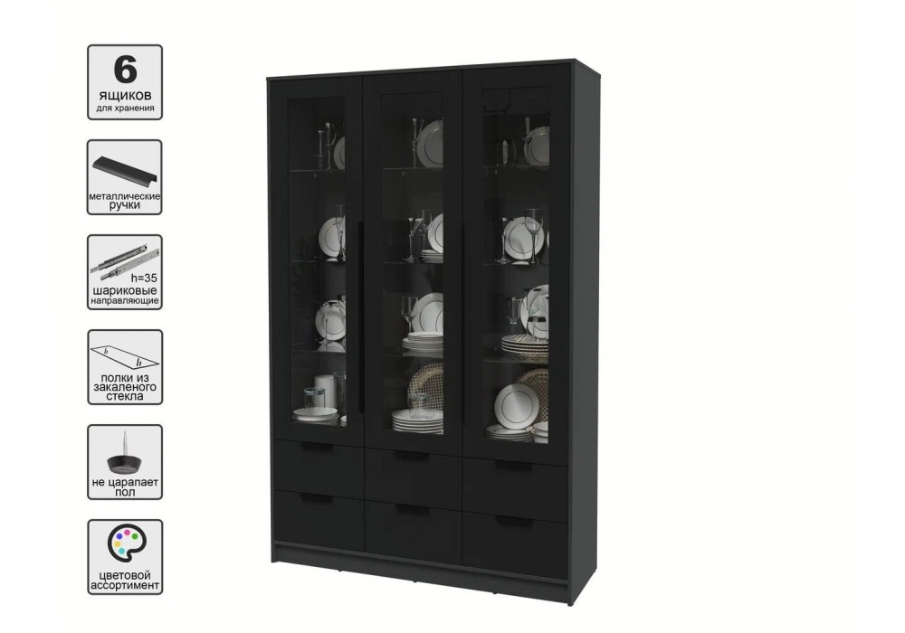 Шкаф с витриной Концепт КТ-ШВ3 (Антрацит/Черный) фабрика Интерлиния