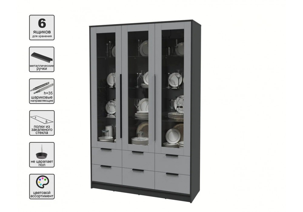 Шкаф с витриной Концепт КТ-ШВ3 (Антрацит/Серебро) фабрика Интерлиния