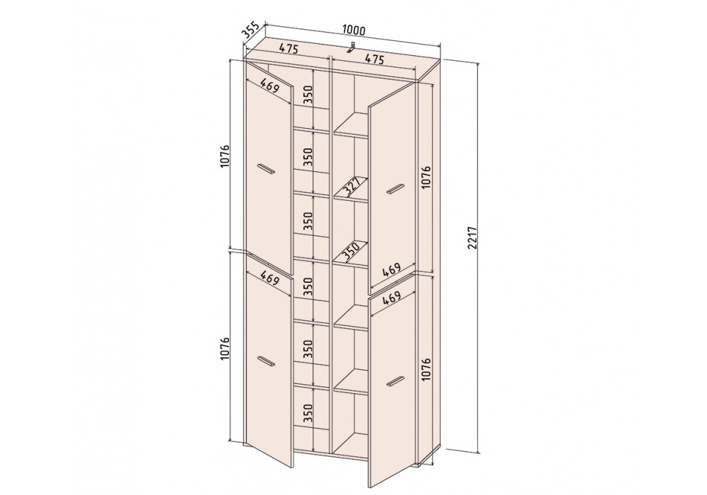 Шкаф SKILL-20 (4) (белый) фабрика Интерлиния
