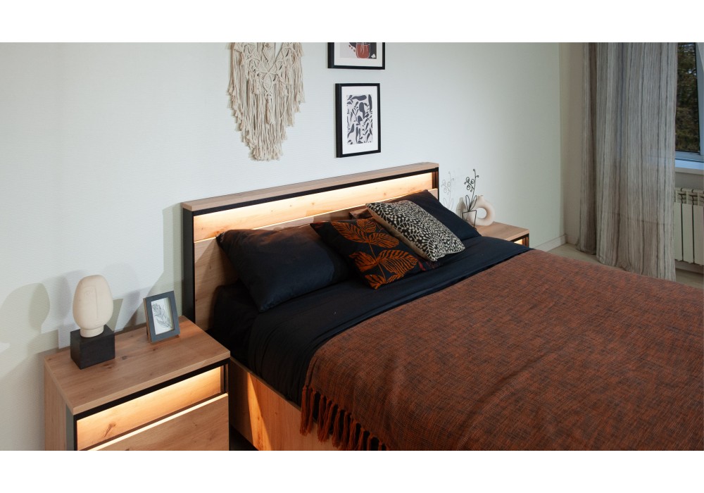 Спальный гарнитур Тринити с подсветкой (Дуб Онтарио/чёрный) фабрика Империал