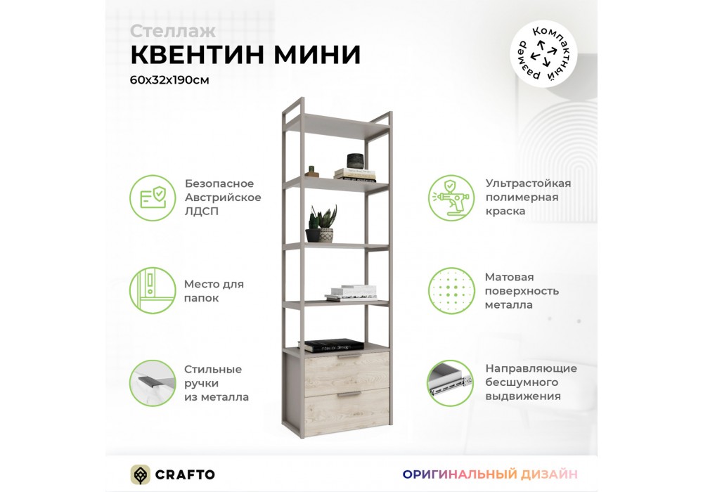 Стеллаж Crafto Квентин Мини Лофт 07 (латте каштан) 600 320 1900