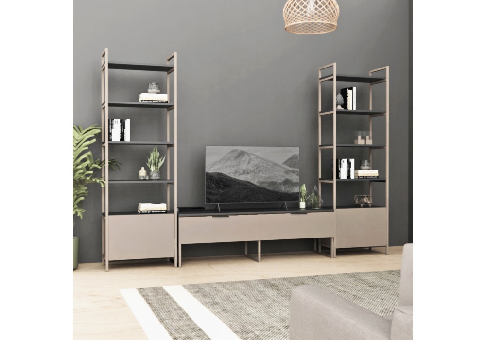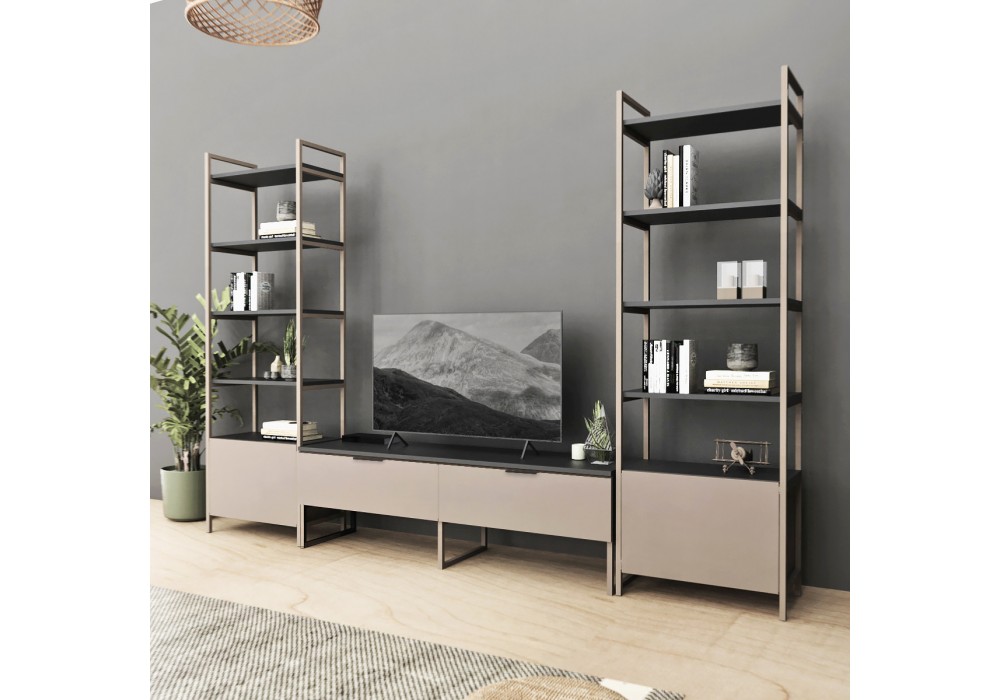 Стенка в гостиную в стиле лофт CRAFTO РОККИ БОНД / латте графит