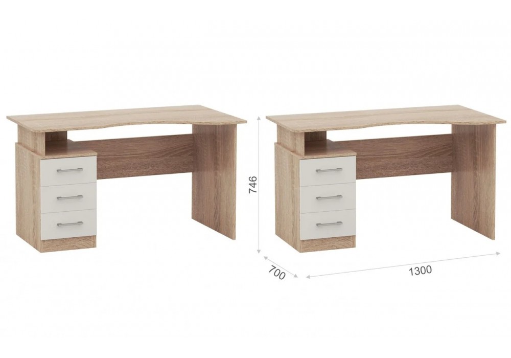 Стол Гарвард эргономик 130 3ящ правый (Дуб сонома/белый) фабрика Империал
