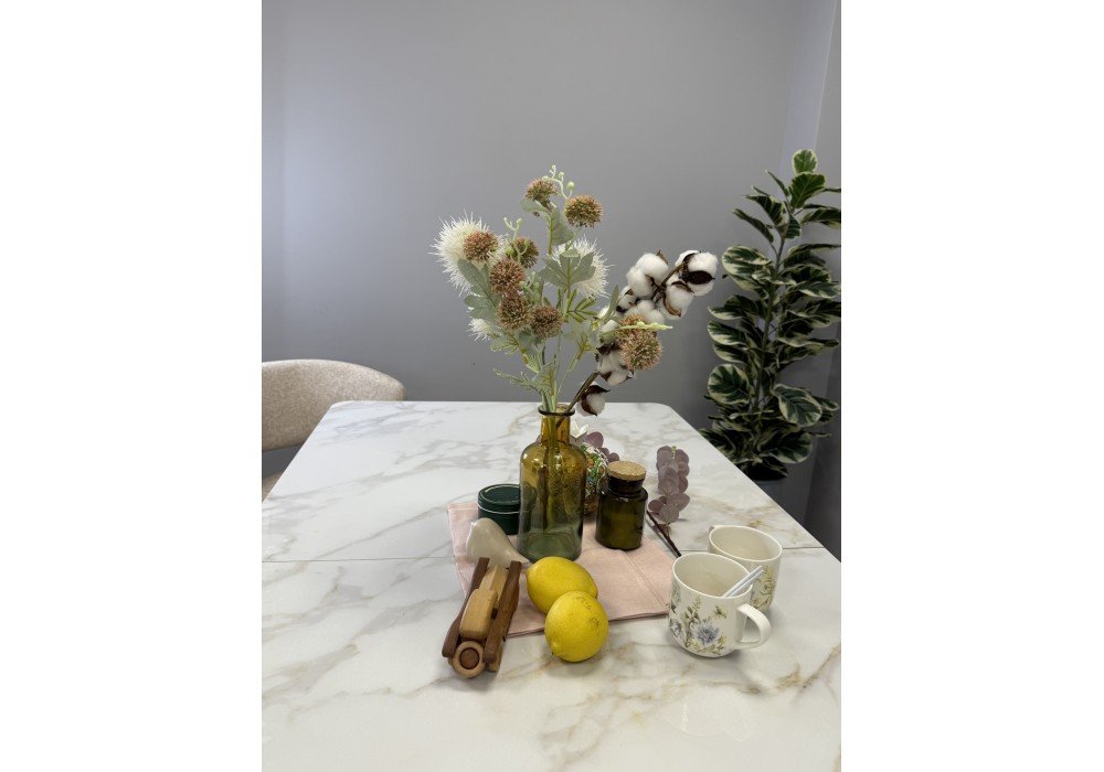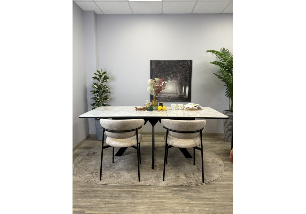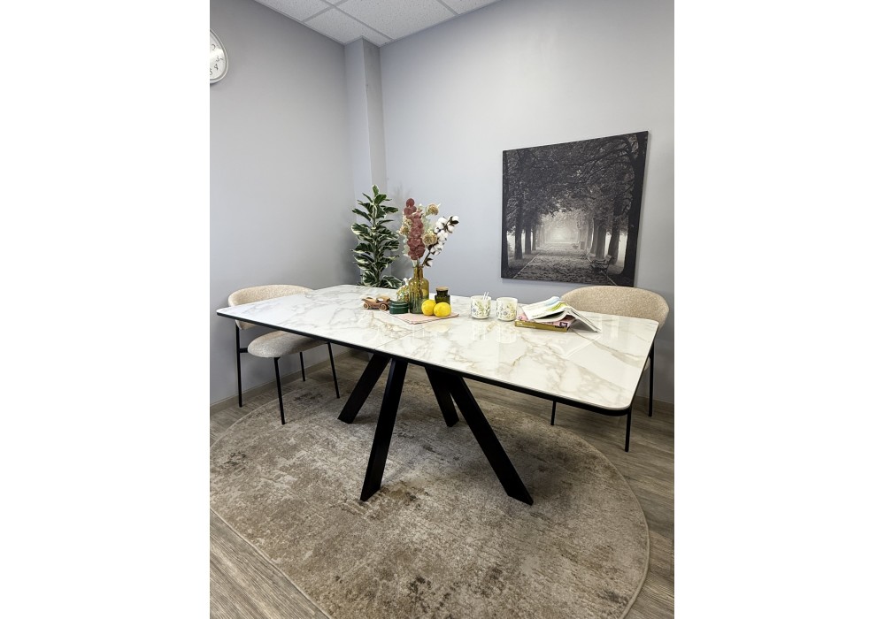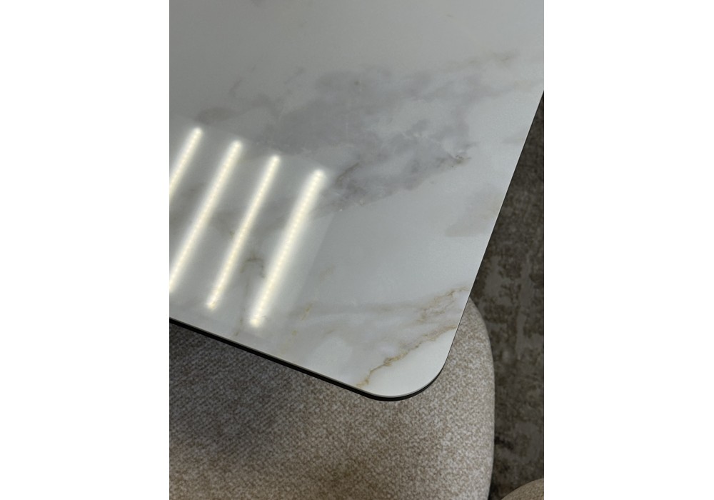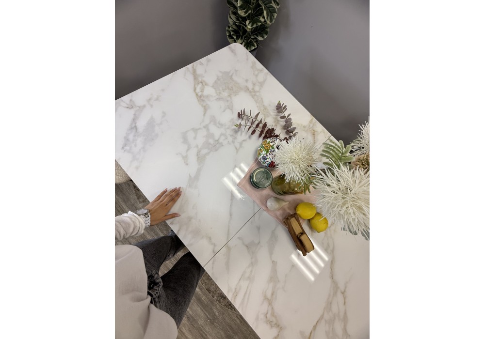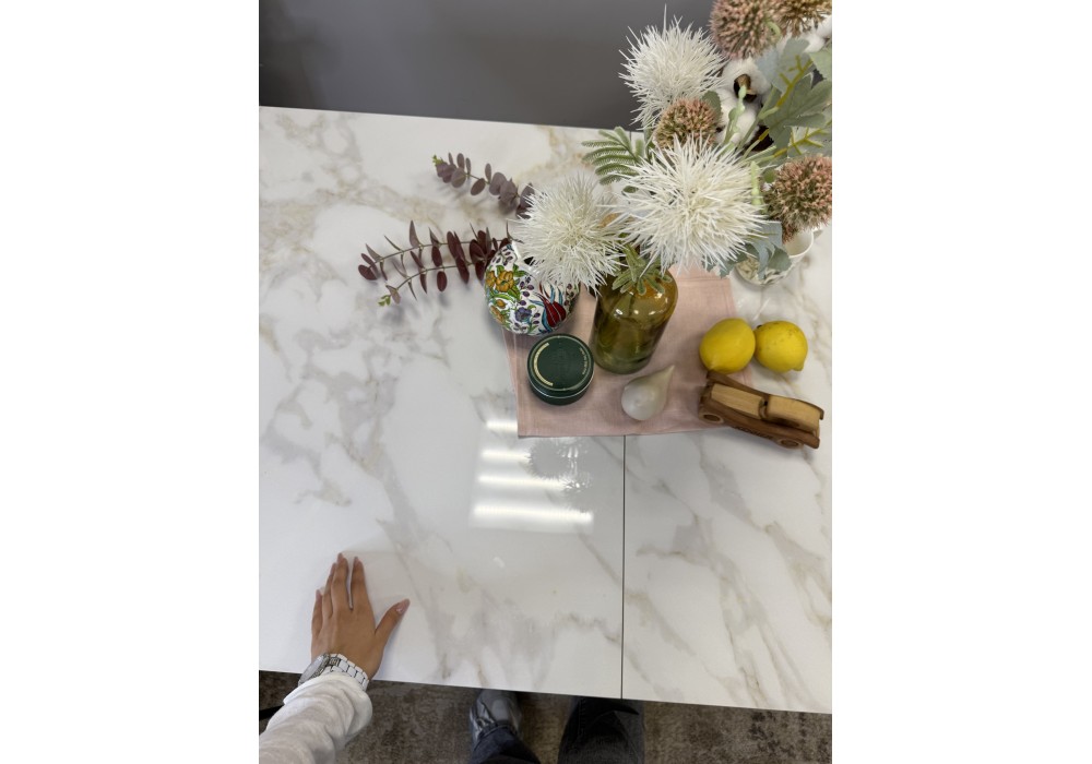 Центральная опора обеспечивает удобство использования, гарантирует высокую надёжность и устойчивость. Большая вставка увеличивает рабочую поверхность, а керамическая столешница придаёт элегантность и долговечность всему изделию.