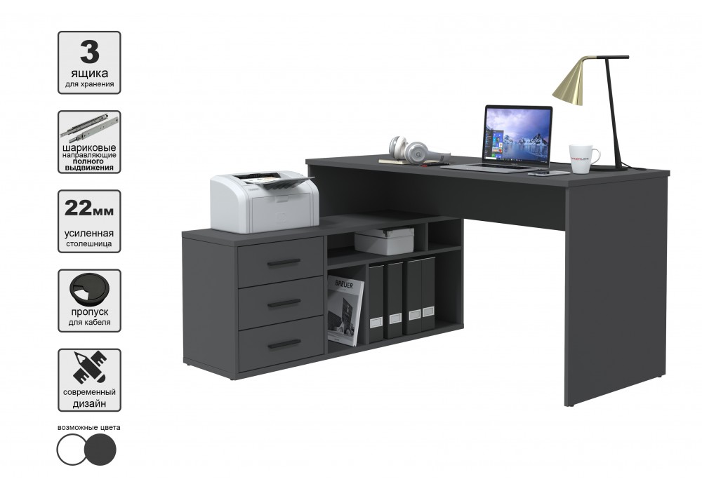 Стол компьютерный Skill-5 (Л) (антрацит) фабрика Интерлиния