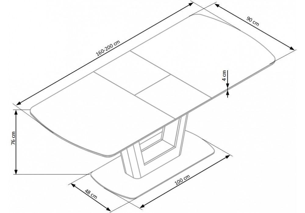 Стол обеденный HALMAR BILOTTI раскладной, антрацит матовый/орех, 160-200/90/76
