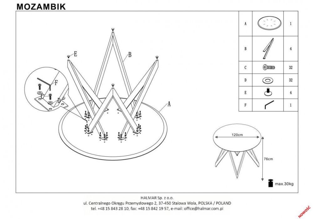 Стол обеденный HALMAR MOZAMBIK дуб золотой/черный, 120/75