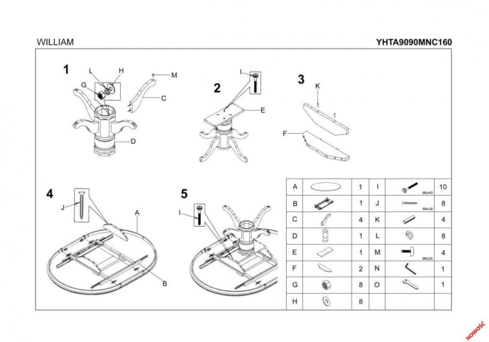 Стол обеденный HALMAR WILLIAM раскладной, белый, 90-124/90/75 (V-CH-WILLIAM-ST-BIALY)