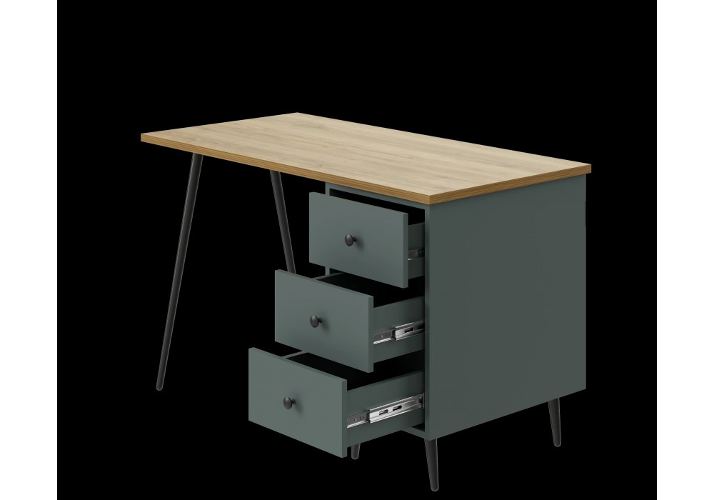 Стол письменный 3я «Меридиан» с выдвижными ящиками– это стильное интерьерное решение, которое одинаково хорошо подойдет для квартиры или офиса. С помощью нашего стола вы сможете отлично организовать рабочее место, за ним удобно и комфортно будет сидеть. Необычный дизайн позволит вписать стол в самое маленькое помещение, рационально использовать каждый сантиметр пространства. Компактный стол письменный для школьников —это комфортная мебель для учебы и работы, на нем отлично поместится ноутбук или полноценный компьютер. Он будет отличным помощником в учебе вашему ребенку. Стол письменный с прямоугольной крышкой, установлен на опорах, справа тумба с проходными боками с тремя вкладными выдвижными ящиками. Изделие может собираться как с левым расположением тумбы, так и с правым.