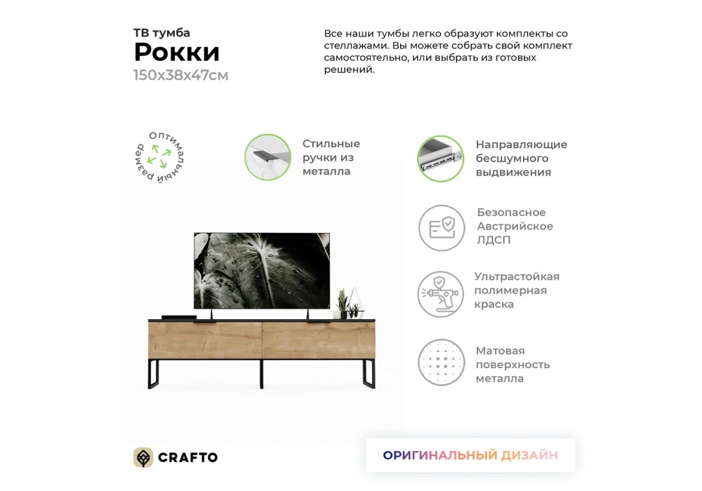 Тумба Crafto Рокки 01 (графит дуб) 1500 380 470 в стиле лофт