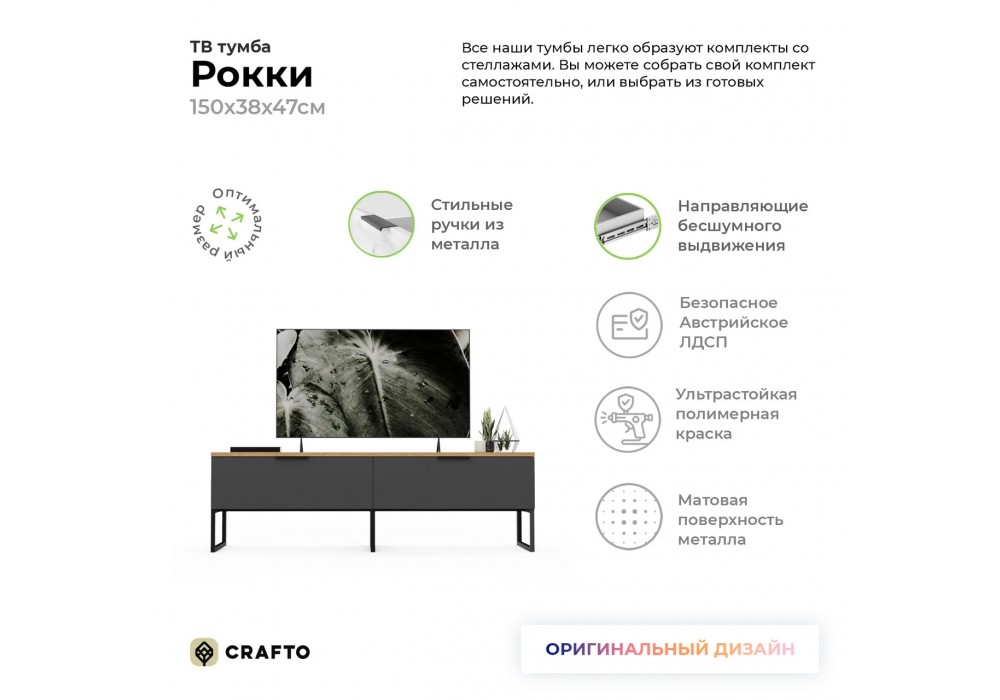 Тумба Crafto Рокки 02 (черный дуб) 1500 380 470