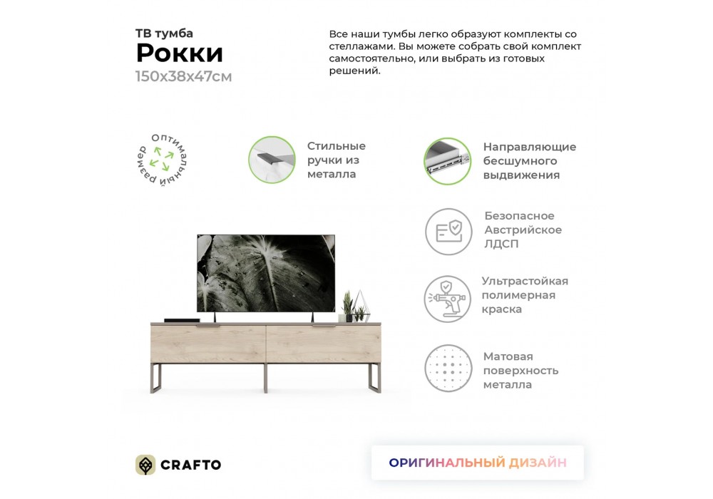 Тумба Crafto Рокки 06 (латте каштан) 1500 380 470 в стиле лофт