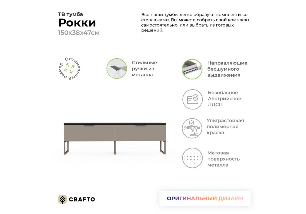 Тумба Crafto Рокки 08 (латте графит) 1500 380 470 в стиле лофт