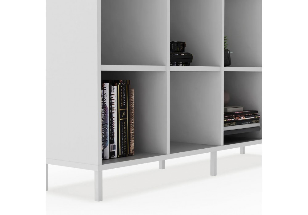 Металлические ножки покрыты прочной полимерной краской, а еще она не выделяет вредных веществ. Восемь открытых полок для хранения всего необходимого.