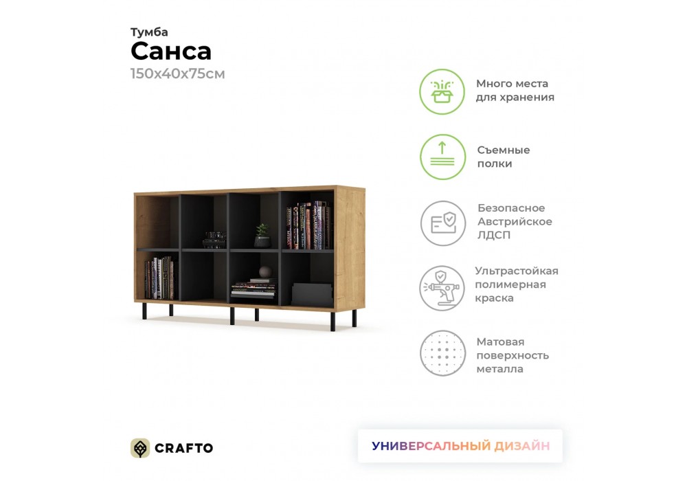 Тумба Crafto Санса 04 (графит дуб) 1500 400 750