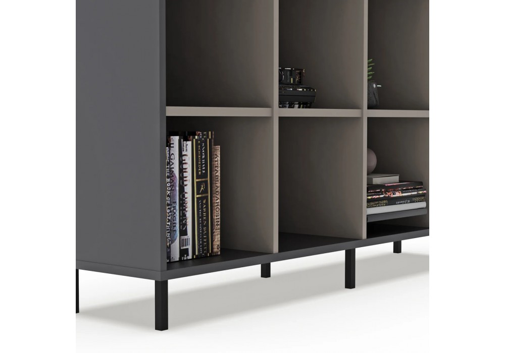 Металлические ножки покрыты прочной полимерной краской, а еще она не выделяет вредных веществ. Восемь открытых полок для хранения всего необходимого.