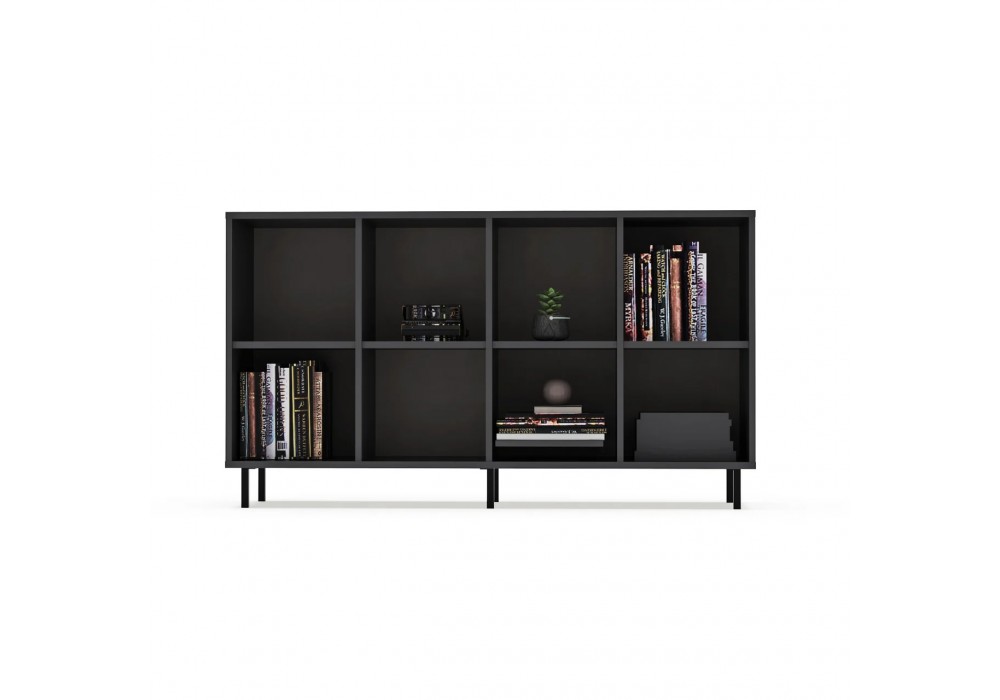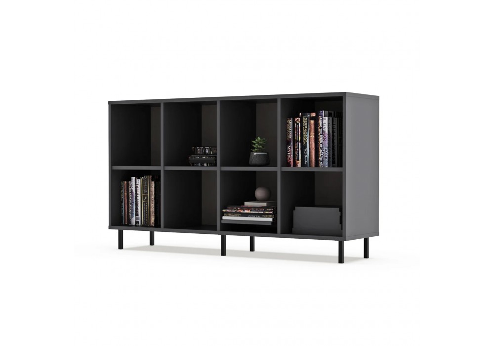 Металлические ножки покрыты прочной полимерной краской, а еще она не выделяет вредных веществ. Восемь открытых полок для хранения всего необходимого.