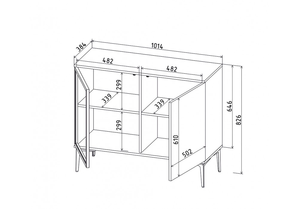 - Внутренние полки ЛДСП 16 мм Дуб Золотой, оклеиваются кромкой: дуб золотой 0,45 мм.