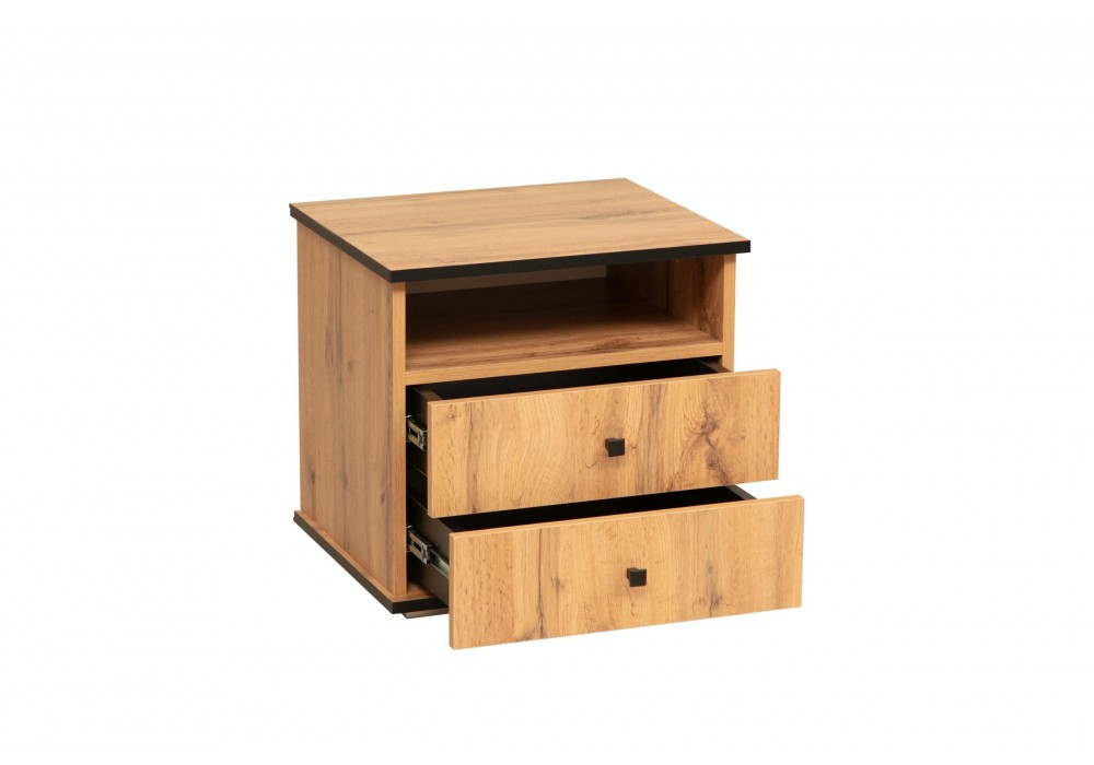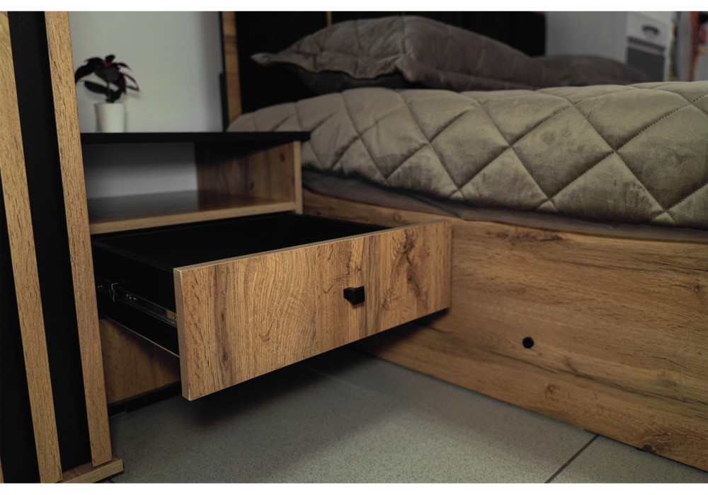 Тумба прикроватная Либерти 51.17 (опора h=20мм) (дуб вотан / черный / профиль: Masa Decor дуб вотан) Фабрика Олмеко