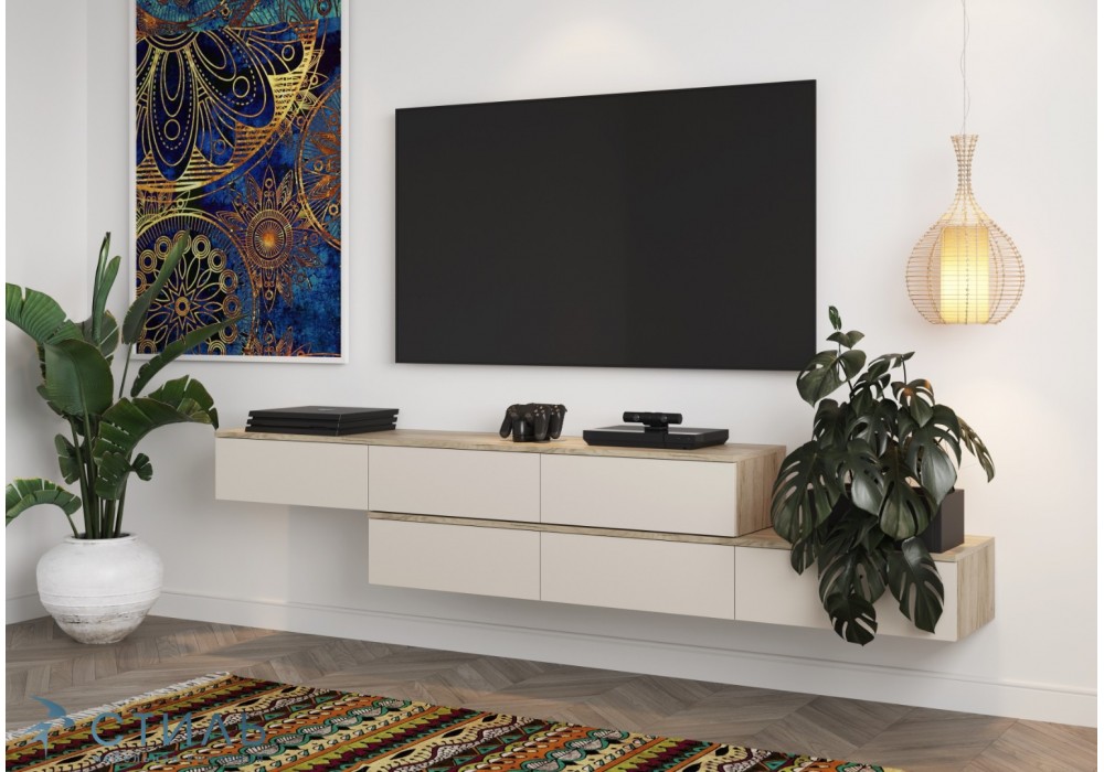 Тумба ТВ Бохо ТМ-003 - Дуб Крафт серый / Кашемир (МК Стиль)